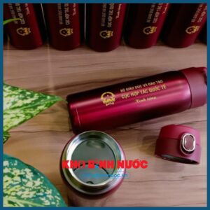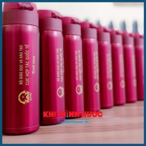 - Logo và slogan doanh nghiệp được in sắc nét trên bình giúp thương hiệu tiếp cận khách hàng một cách tự nhiên mỗi ngày.